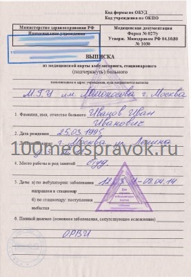 Купить медицинскую справку о болезни формы 027/у (выписка из истории болезни) с доставкой в любой город Купить медицинскую справку в Оренбурге | медицинские справки Оренбург